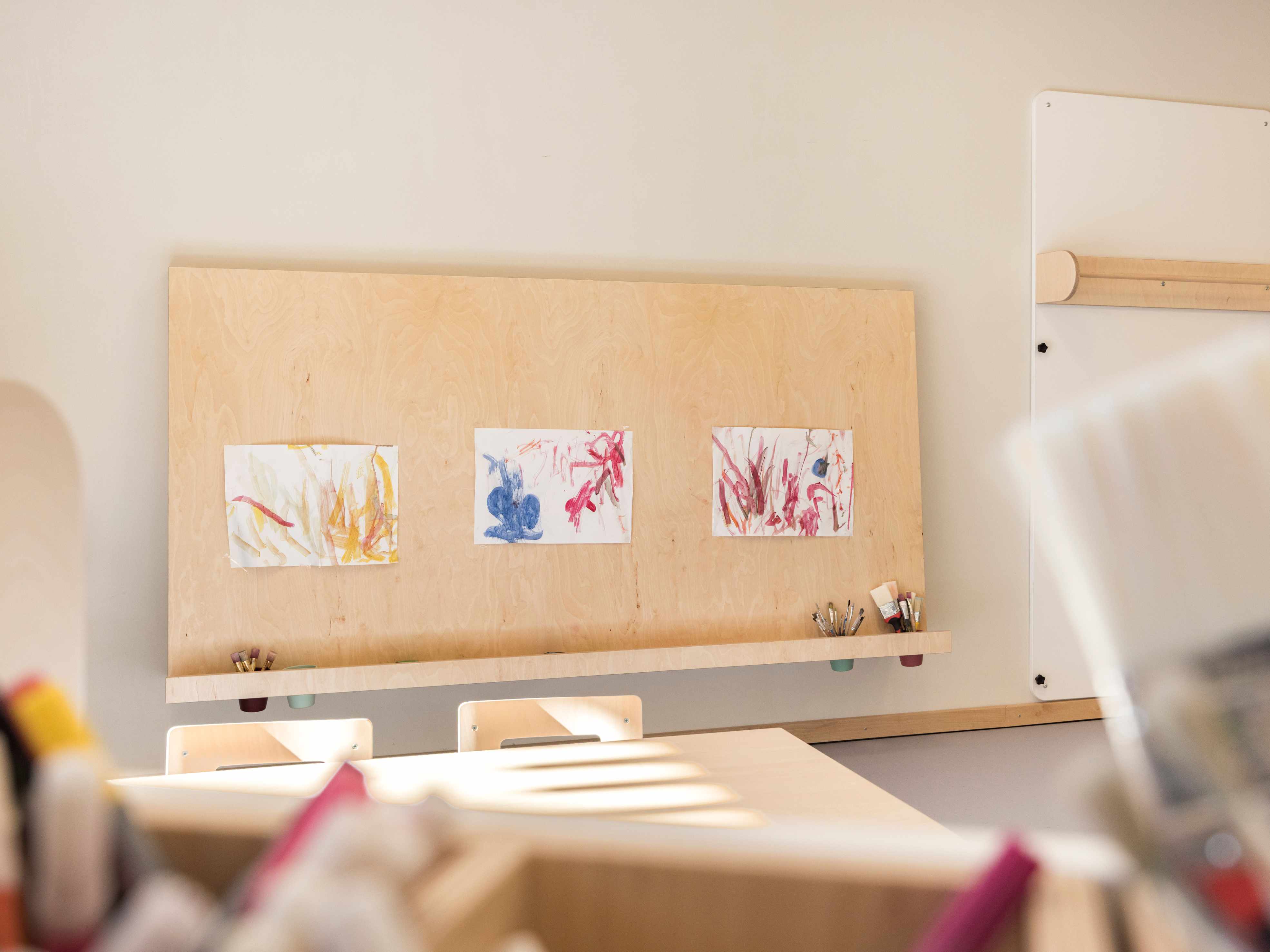 Möblierung eines 2-gruppigen Hortes in München. Ganzheitliche Abwicklung vom Konzept bis zur Ausführung.